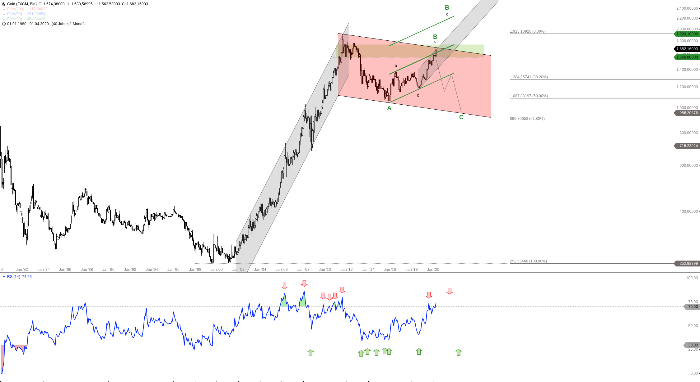 Monatschart Gold 1980 – 2020, eine Kerze entspricht einem Monat – Chart by Guidants.