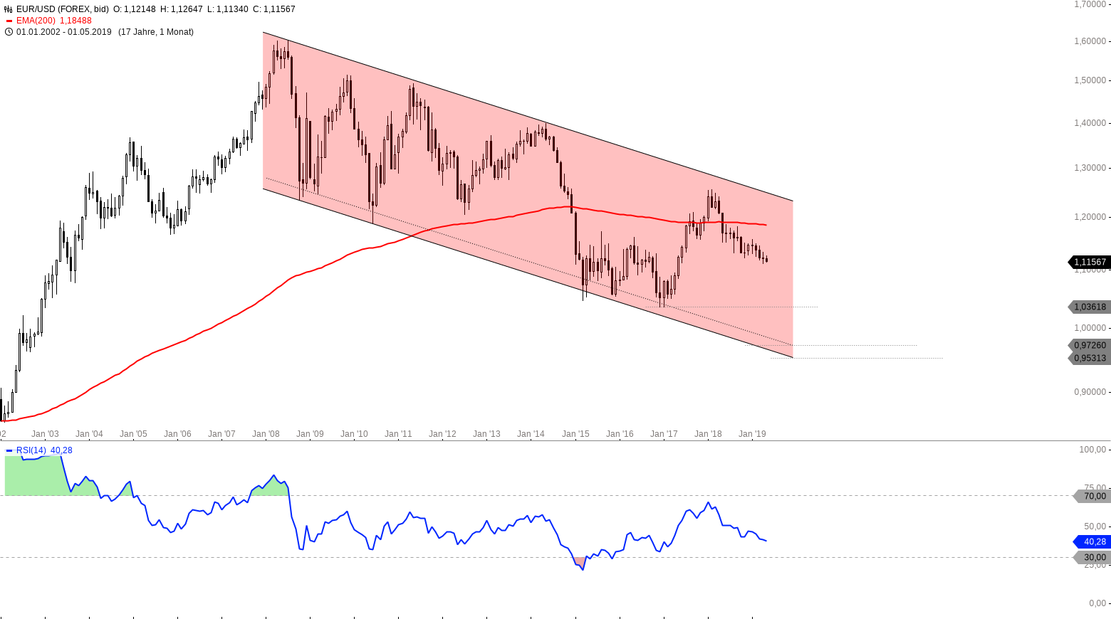 Monatschart EUR_USD 2002 – 2019, eine Kerze entspricht einem Monat – Chart by Guidants.