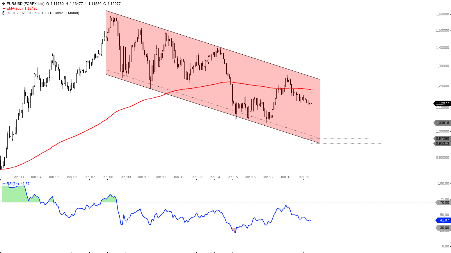 Monatschart EUR_USD 2002 – 2019, eine Kerze entspricht einem Monat – Chart by Guidants.