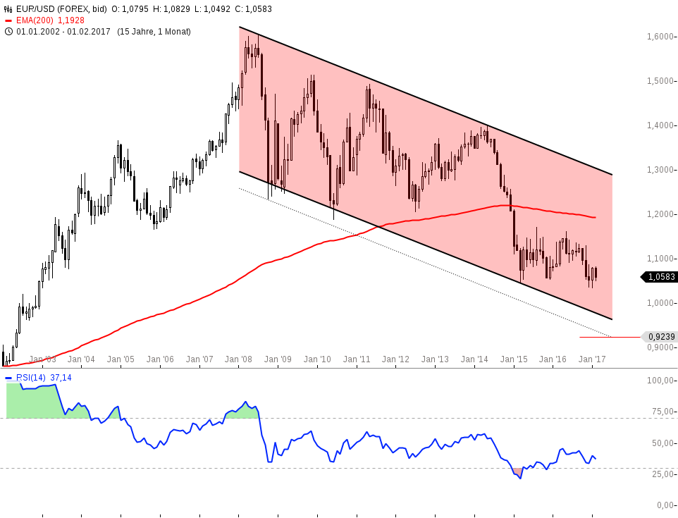 Monatschart EUR_USD 2003 – 2017, eine Kerze entspricht einem Monat – Chart by GodmodeTrader / Guidants