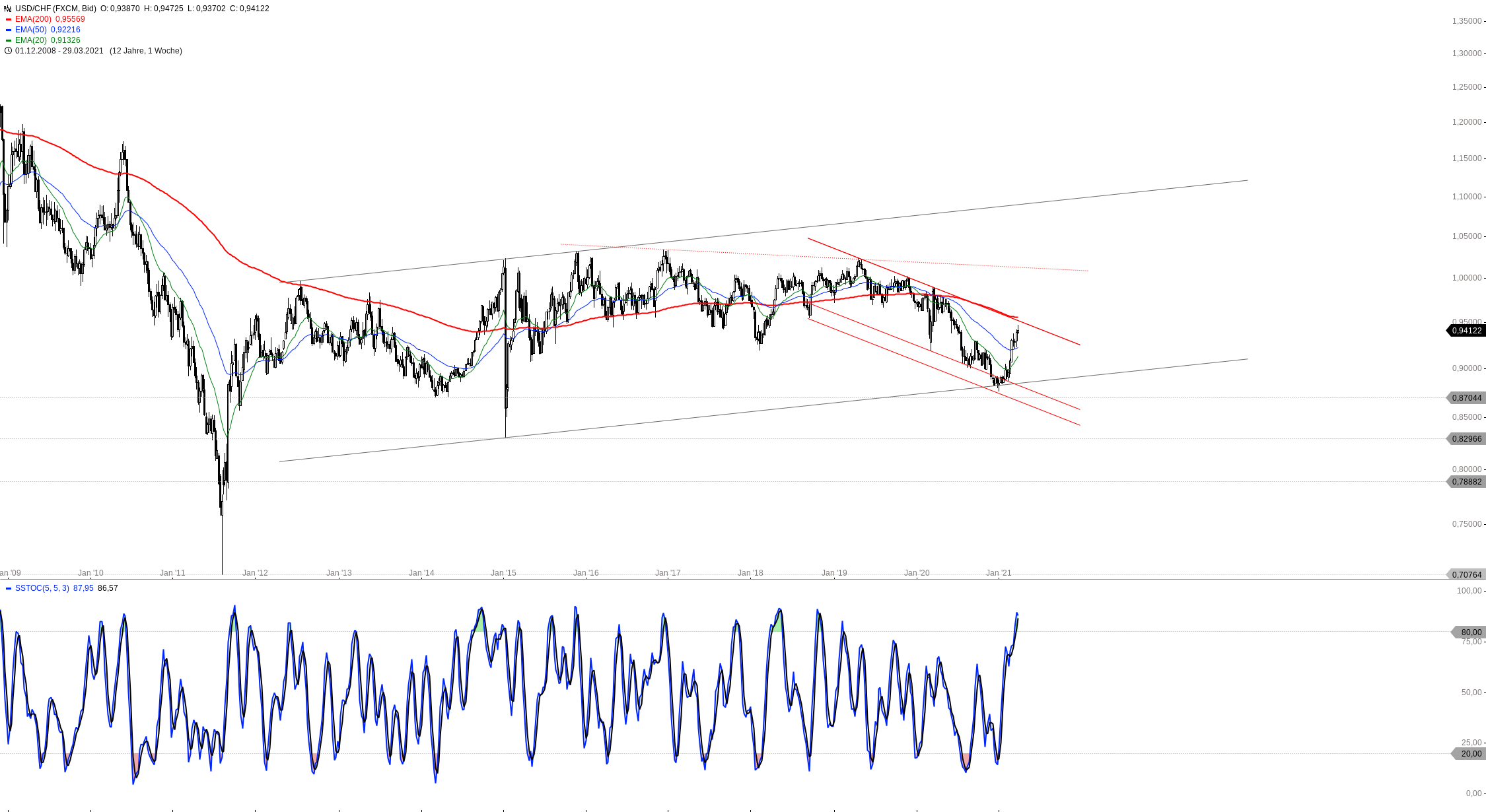 Wochenchart USD_CHF März 08 – April 21, eine Kerze entspricht einer Woche / Logarithmisch – Chart by Guidants