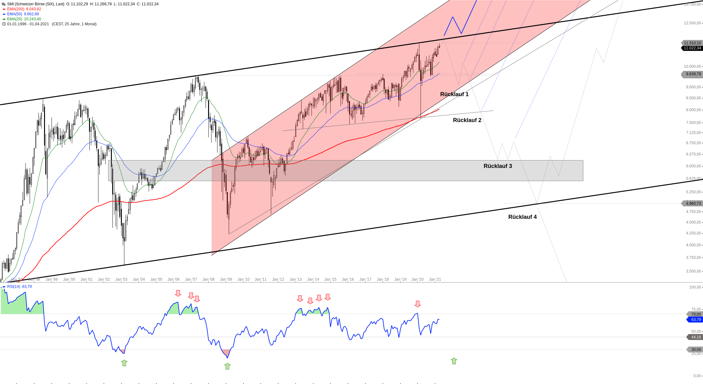 - Siehe Rücklauflevels 1 – 4 (SMI Chart oben).