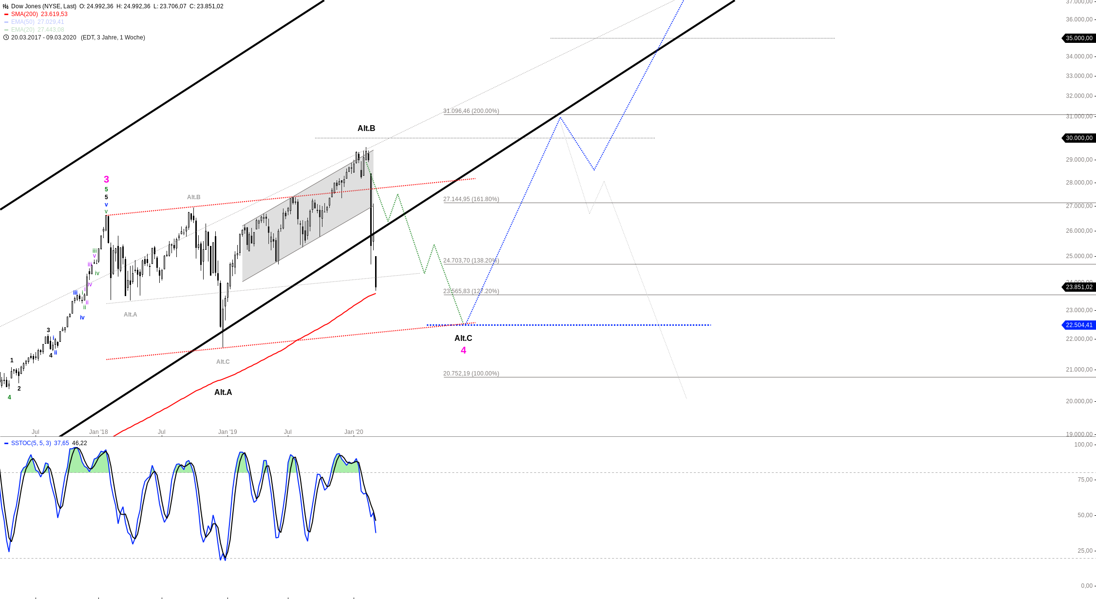 Wird immer mehr die wahrscheinlichste Variante. Innerhalb dieser hätte der Dow Jones seine seit Januar 2018 laufende Korrekturbewegung sauber und 3-wellig abgeschlossen.